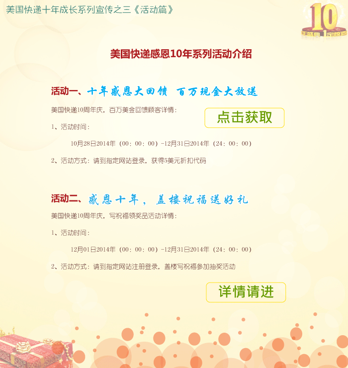 美國(guó)快遞感恩10年,百萬美金大回饋